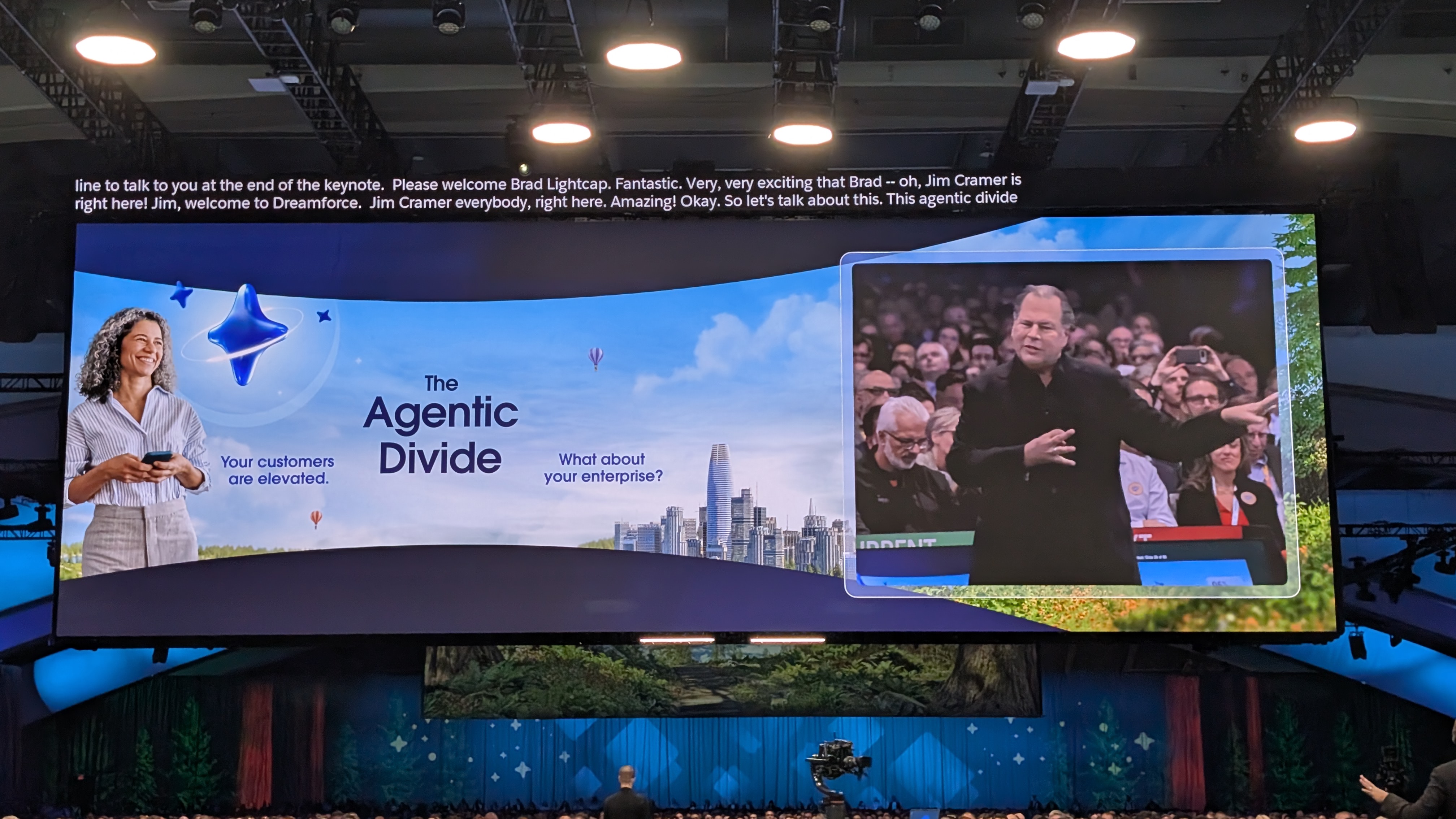 Benioff collars Brad Lightcap from OpenAI again to ask about the company's AI plans, then outlines "the agentic divide".