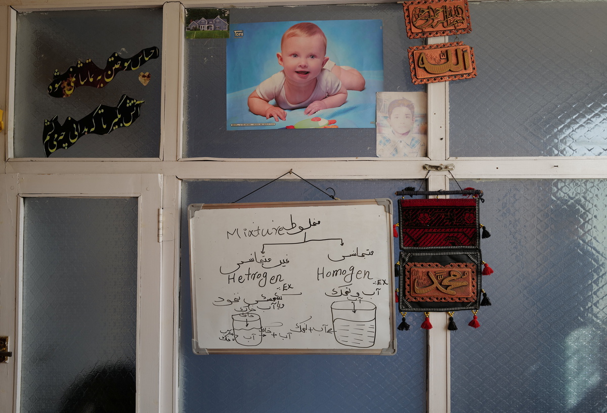 A whiteboard used by Sahar, 17, an 11th grade secondary school student, is seen at her home in Kabul, Afghanistan, October 19, 2021. REUTERS/Zohra Bensemra A map of Afghanistan is seen on the wall of a school hall in Kabul, Afghanistan, October 20, 2021. REUTERS/Zohra Bensemra Hadia, 10, a 4th grade primary school student attends a class in Kabul, Afghanistan, October 25, 2021. REUTERS/Zohra Bensemra Sahar, 17, an 11th grade secondary school student, sits at her house in Kabul, Afghanistan, October 20, 2021. REUTERS/Zohra Bensemra Sahar, 17, an 11th grade secondary school student, who is among those who are banned from school by Taliban, plays volleyball with her sister Hadia, 10, a 4th grade primary school student at their home in Kabul, Afghanistan, October 26, 2021. REUTERS/Zohra Bensemra Hadia, 10, a 4th grade primary school student, walks back from school through an alleyway near her home in Kabul, Afghanistan, October 20, 2021. REUTERS/Zohra Bensemra Sahar, 17, an 11th grade secondary school student copies what she has learnt on YouTube onto a small whiteboard while her sister, Sewita, 19, looks on, at her home in Kabul, Afghanistan, October 19, 2021. REUTERS/Zohra Bensemra Hadia (Centre), 10, a 4th grade primary school student, leaves school after a class in Kabul, Afghanistan, October 25, 2021. REUTERS/Zohra Bensemra Sahar, 17, an 11th grade secondary school student, shows Reuters her former school, where she was allowed back to sit in the classroom, in Kabul, Afghanistan, October 20, 2021. REUTERS/Zohra Bensemra Sahar, 17, an 11th grade secondary school student, helps her sister, Hadia, 10, a 4th grade primary school student, with her homework after school at their home in Kabul, Afghanistan, October 26, 2021. REUTERS/Zohra Bensemra Sahar, 17, an 11th grade secondary school student, sits with her sister, Sewita, 19, at their home in Kabul, Afghanistan, October 19, 2021. REUTERS/Zohra Bensemra Sahar, 17, an 11th grade secondary school student, walks past her former school in Kabul, Afghanistan, October 20, 2021. REUTERS/Zohra Bensemra A Taliban fighter gestures to a colleague as he stands by the entrance to a school, in Kabul, Afghanistan, October 25, 2021. REUTERS/Zohra Bensemra Sahar, 17, an 11th grade secondary school student, uses YouTube to study at her home in Kabul, Afghanistan, October 19, 2021. REUTERS/Zohra Bensemra Sahar, 17, an 11th grade secondary school student, helps her sister, Hadia, 10, a 4th grade primary school student, with her homework after school at their home in Kabul, Afghanistan, October 26, 2021. REUTERS/Zohra Bensemra Sahar, 17, an 11th grade secondary school student, studies on YouTube to keep herself busy at her home in Kabul, Afghanistan, October 19, 2021. REUTERS/Zohra Bensemra Sahar, 17, an 11th grade secondary school student, puts nail polish at home in Kabul, Afghanistan, October 20, 2021. REUTERS/Zohra Bensemra