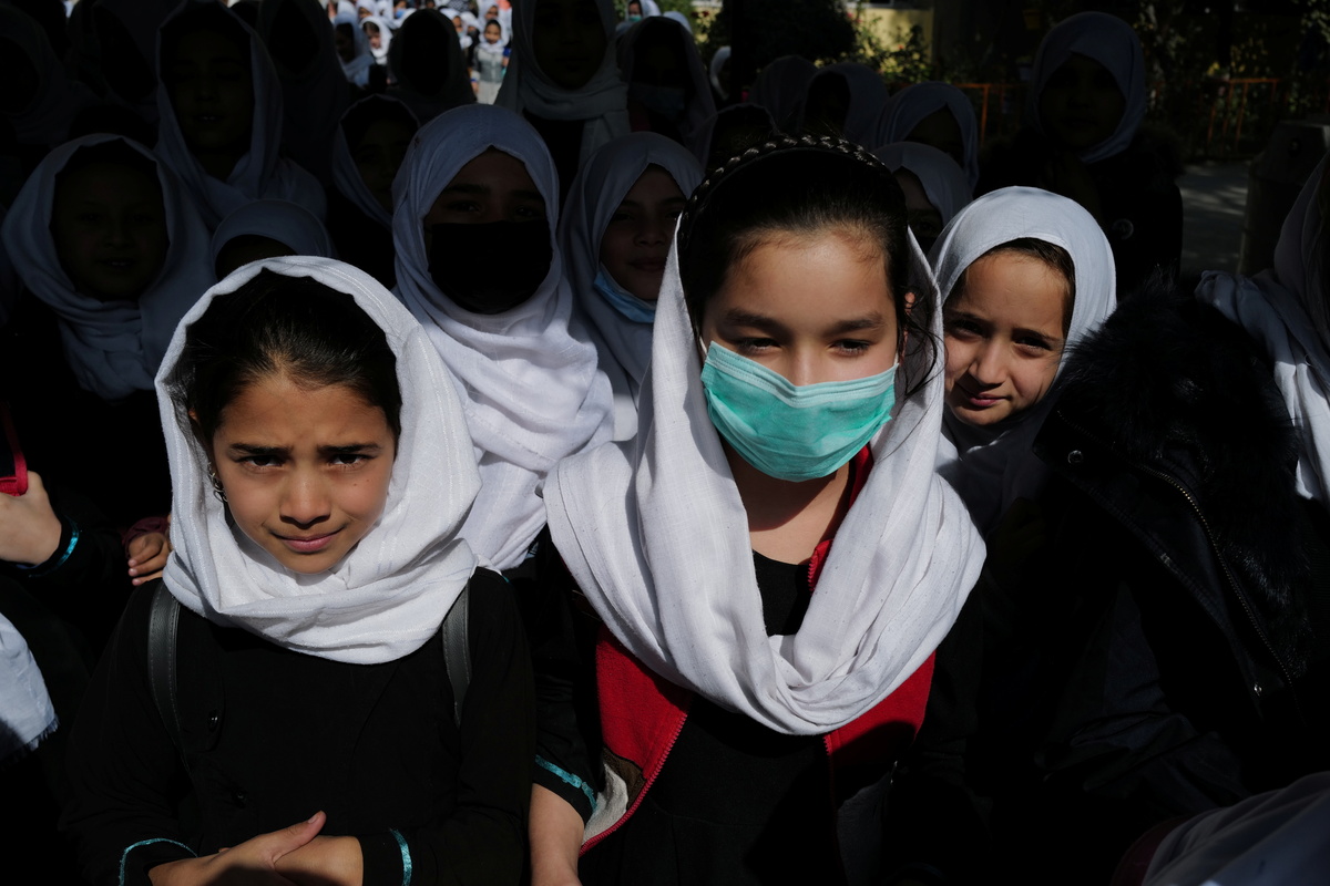 Female primary school students leave school after a class in Kabul, Afghanistan, October 25, 2021. REUTERS/Zohra Bensemra