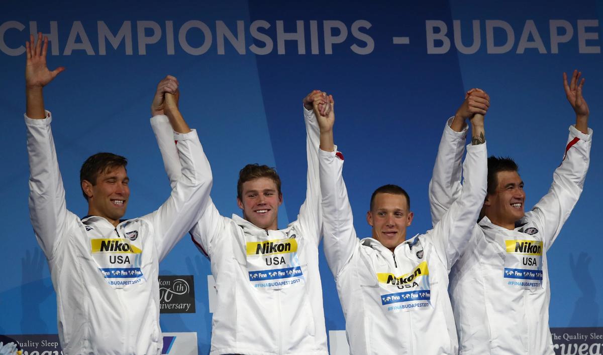 BUDAPEST (Reuters) - U.S. swimmer Caeleb Dressel equalled compatriot Michael Phelps's record of seven gold medals at a single world championships on Sunday.