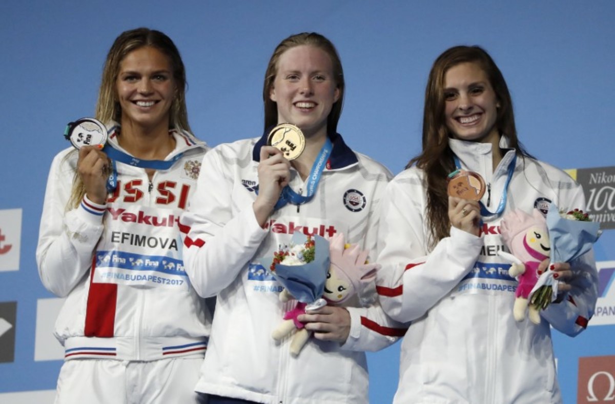 King beat Russian Yuilya Efimova to the wall by 0.17 seconds, with another American, Katie Meili taking bronze.