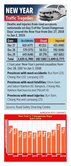 A 30% rise was seen in the number of drink-driving arrests from Thursday until Saturday, the first three of the so-called seven dangerous days of the holiday period, Pol Lt Gen Damrongsak Kittipraphat, an assistant to the national police chief, said Sunday.