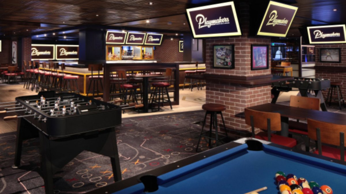On Oasis-call ships, Playmakers has been moved to an outside area, the Boardwalk. That's also a heavily traveled spot, but it suffers from being outdoors. That means that on a hot day, you may not stop by for a drink, some wings, and the famed Skillet Cookie unless you have a rooting interest.