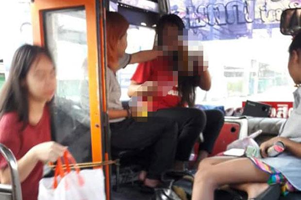 The Bangkok Mass Transit Authority fined Chuchart Diloklarp, who confessed to misconduct after a passenger on the bus photographed the incident and posted it on Facebook.