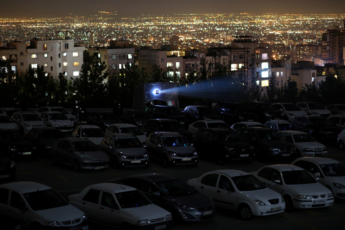 FILE PHOTO: People sit in their cars watching a movie in a drive-in cinema at the Milad Tower parking space, following the outbreak of the coronavirus disease (COVID-19), in Tehran, Iran, May 3, 2020. WANA (West Asia News Agency)/Ali Khara via REUTERS