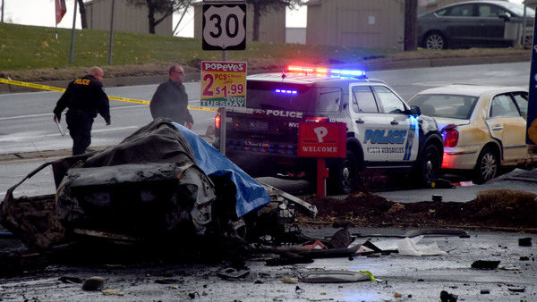 The vehicle that caught fire hit a Mercedes SUV, injuring three women inside, Romilda Ramirez, Amelia Ramirez and Roseann Galiffa. Galiffa was admitted to Forbes Regional with head trauma, police said.