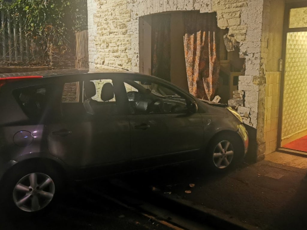 The South Wales Police roads policing unit tweeted a picture of the car embedded in the wall and of the cannabis farm inside, and said: “Surprisingly the home owner wasn’t home.