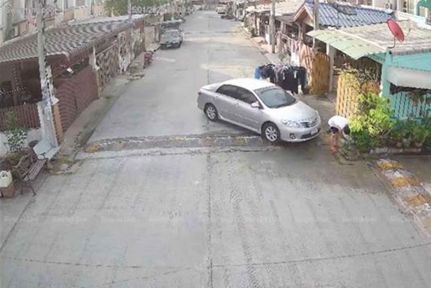 Mr Paiboon reversed and almost hit Suphan's clothesline, which extended out into the soi.