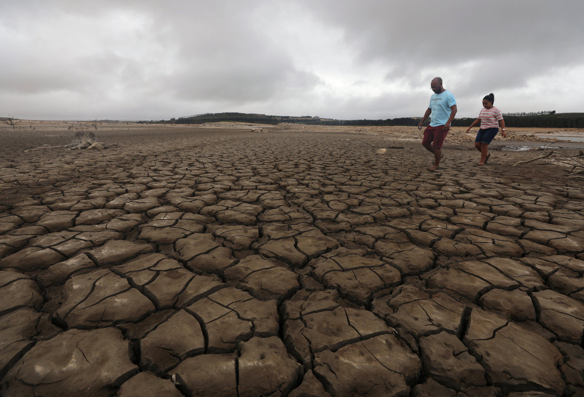 A family negotiates their way through caked mud around a dried up section of the Theewaterskloof dam near Cape Town, South Africa, January 20, 2018. The dam, which supplies most of Cape Town's potable water, is currently dangerously low as the city faces "Day Zero", the point at which taps will be shut down accross the city. Picture taken January 20, 2018. REUTERS/Mike Hutchings