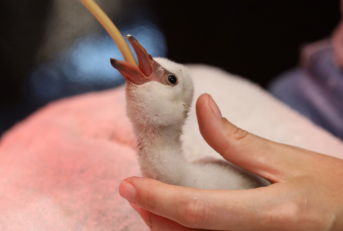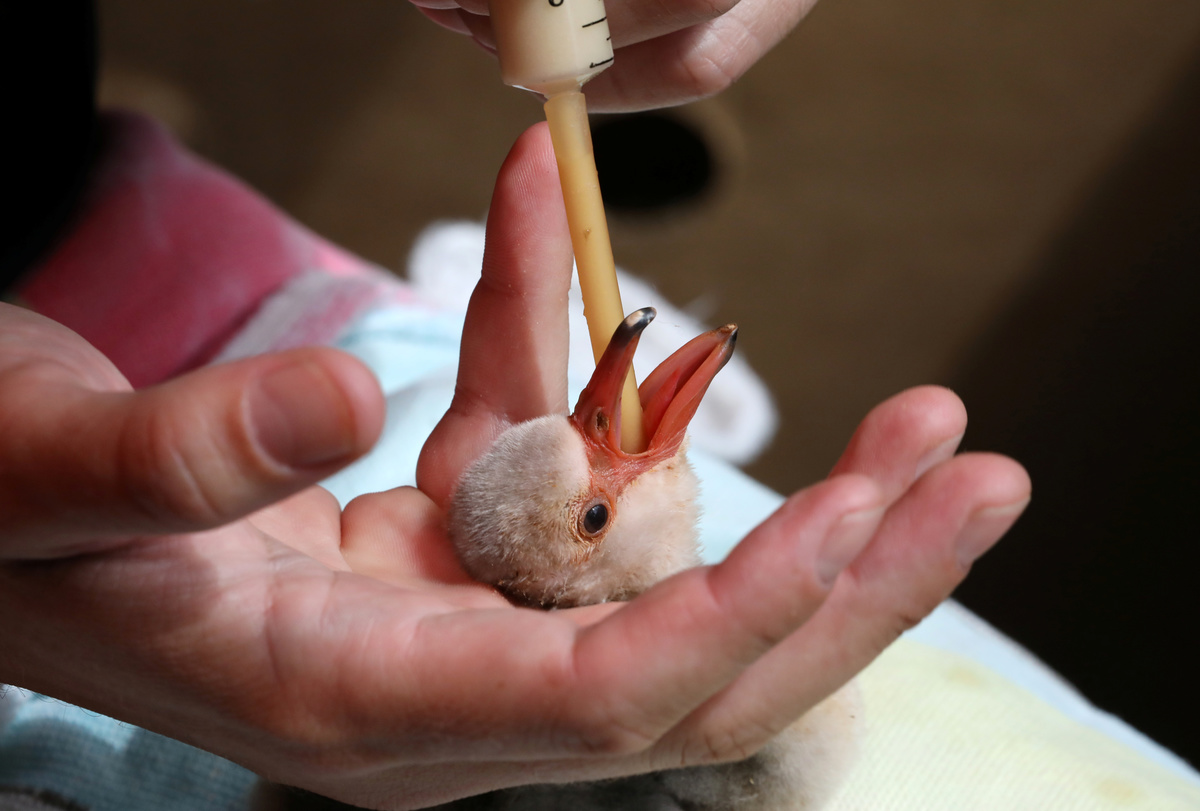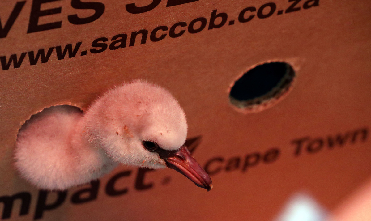 CAPE TOWN (Reuters) - Rescuers are moving hundreds of dehydrated Lesser Flamingo chicks from their breeding ground at a drought-stricken South African dam to a bird sanctuary in Cape Town, to save them from death by starvation and lack of water.