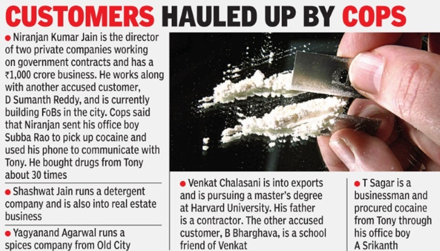 HYDERABAD: Nigerian peddler Chukwu Ogbonna David alias Tony, who was arrested for the first time on Wednesday by city cops from Pune since coming to India in 2013, never met any of his rich clients directly, operating only through his trusted lieutenants.
