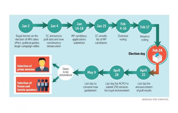 The EC will then announce the lists of candidates contesting the constituency system and party-list candidates on Jan 25. Overseas voting will be held on Feb 4-16 and advance voting will take place on Feb 17.