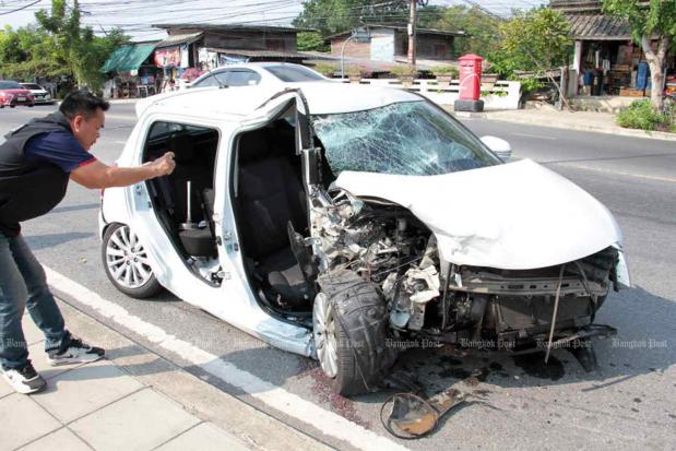 Two people inside the Suzuki were killed - Pol Lt Col Chatuporn Ngamsuwichakul, 48, deputy chief of the Crime Suppression Division's Subdivision 2, and his wife Nuchanart, 44. The victims' youngest daughter, who was also in the car, was seriously injured.