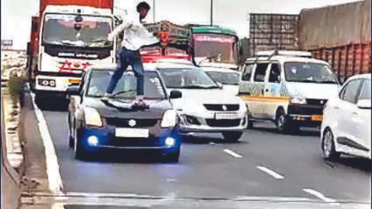 SURAT: Videos of a man, suspected to be under the influence of alcohol or some other intoxicating substance, went viral on social media on Monday. In the video, the man, about 30 years of age, is seen sitting and walking in the middle of Pipodara flyover bridge on National Highway 48 near Kim in Surat.