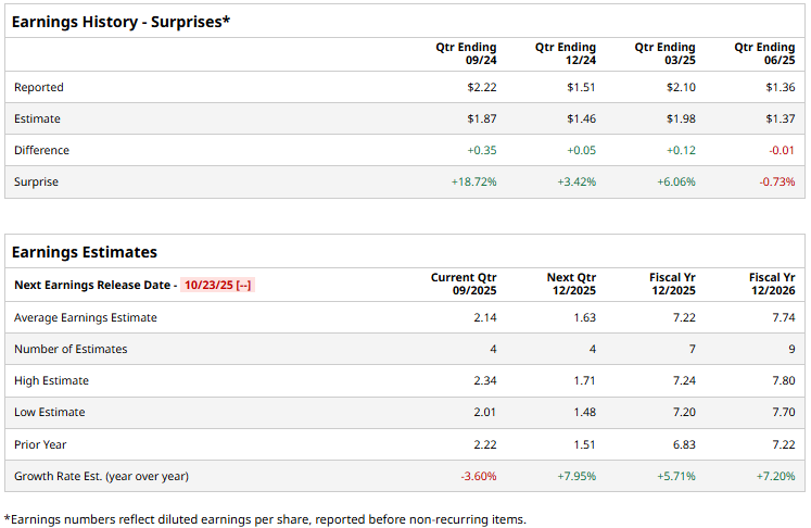 The utilities giant is expected to announce its third-quarter results before the market opens on Thursday, Oct. 23. Ahead of the event, analysts expect DTE to deliver an adjusted profit of $2.14 per share, down 3.6% from $2.22 per share reported in the year-ago quarter. The company has a mixed earnings surprise history. While it surpassed the Street’s bottom-line estimates thrice over the past four quarters, it missed the projections on one other occasion.