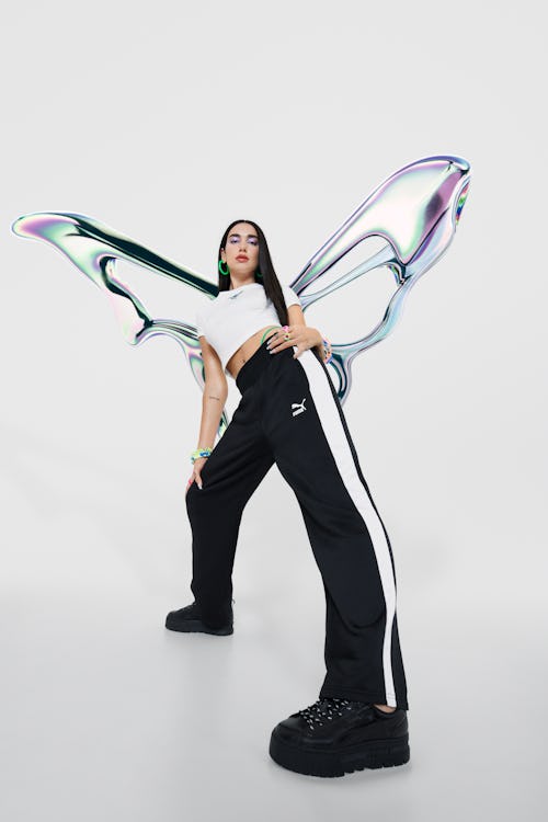 Dua Lipa and Puma are taking their partnership one platform-footed step forward with their first collaboration. After becoming a Puma brand ambassador last year, Dua is launching a co-branded capsule dubbed “Flutur,” named after the Albanian word for butterfly. The ‘90s-inspired collection includes hoodies, crop tops, and Lipa’s own “Flutur” version of Puma’s Mayze sneaker — reportedly, just a preview of more to come in 2022, Puma said in a press release.