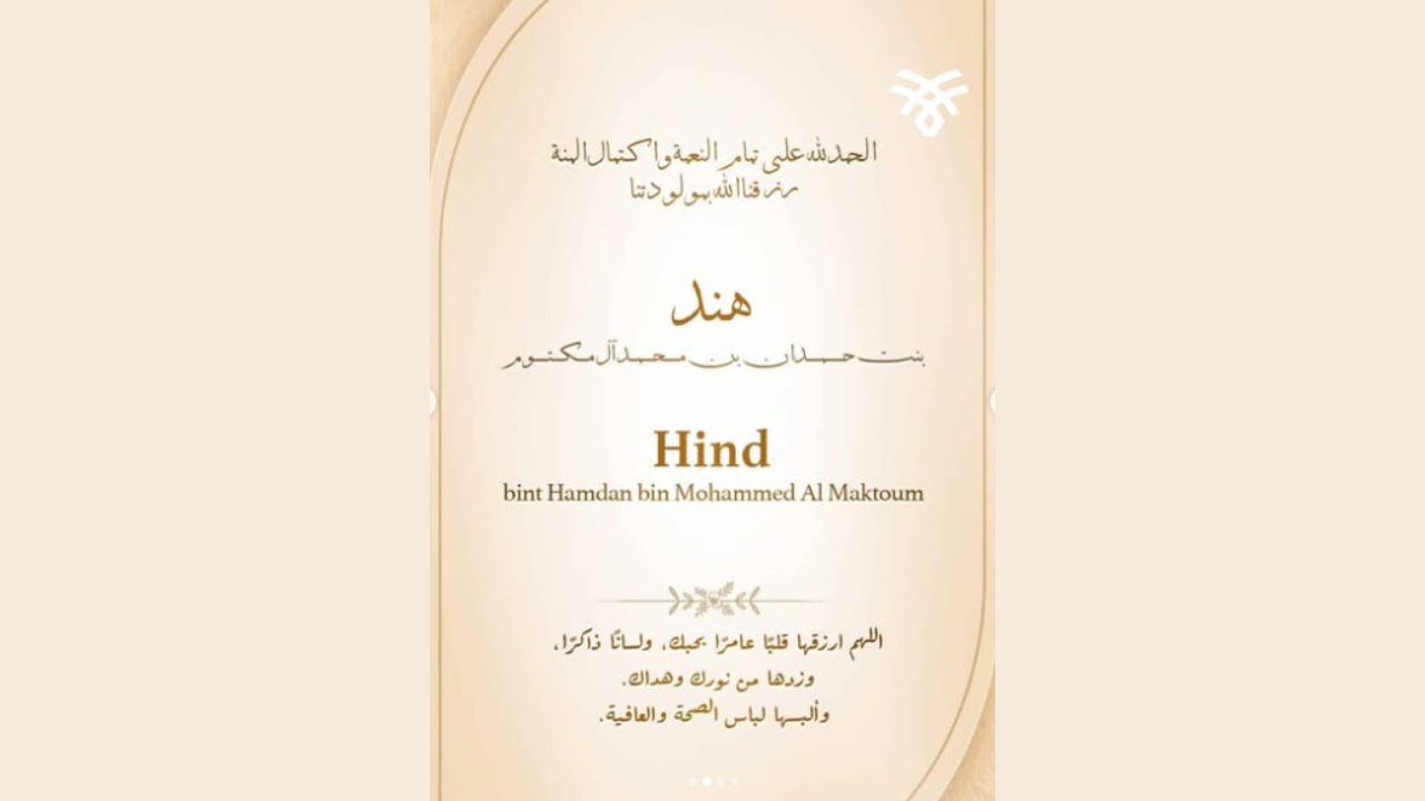 Sheikh Hamdan bin Mohammed, Crown Prince of Dubai has welcomed a baby girl and the new royal baby has one of the most beautiful names: Hind bint Hamdan bin Mohammed Al Maktoum. This is his fourth child. The Crown Prince also has twins, Rashid and Shaikha born in May 2021 and a son, Mohammed, born in February 2023.