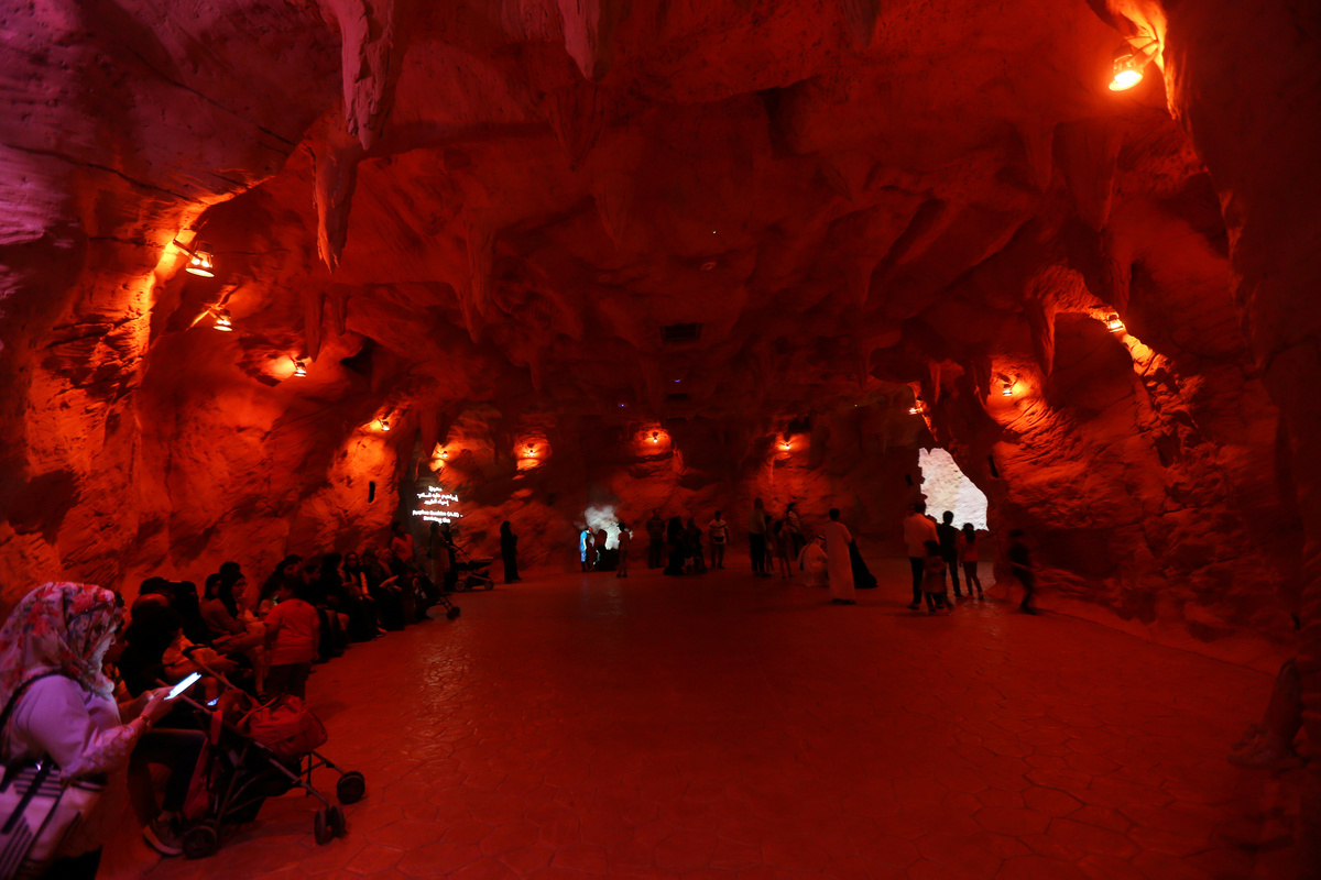 The educational park, which seeks to attract Muslims and non-Muslims alike, features 12 gardens, a "Cave of Miracles," and a split lake symbolizing Moses parting the Red Sea.