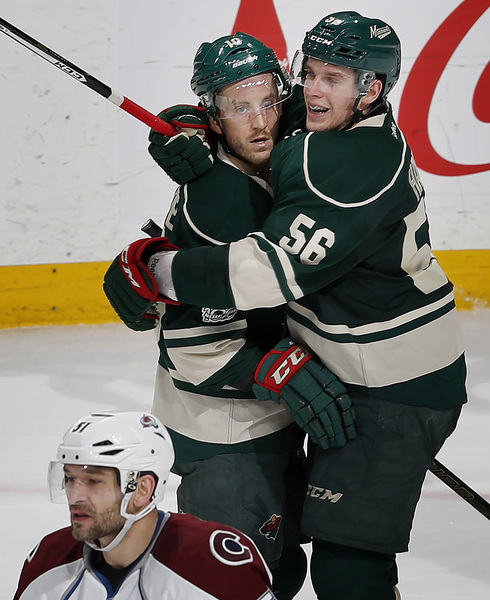 That pulled Colorado within 2-1, but the Wild responded quickly. Only 2:37 after Landeskog's goal, Haula got his first since Feb. 28 on a beautiful setup by Mikael Granlund. Granlund, at the right of the goal crease, took a pass from Koivu _ and with his back to the net, he backhanded the puck to Haula in the slot for a goal and a 3-1 lead with only 20 seconds to go until the first intermission.
