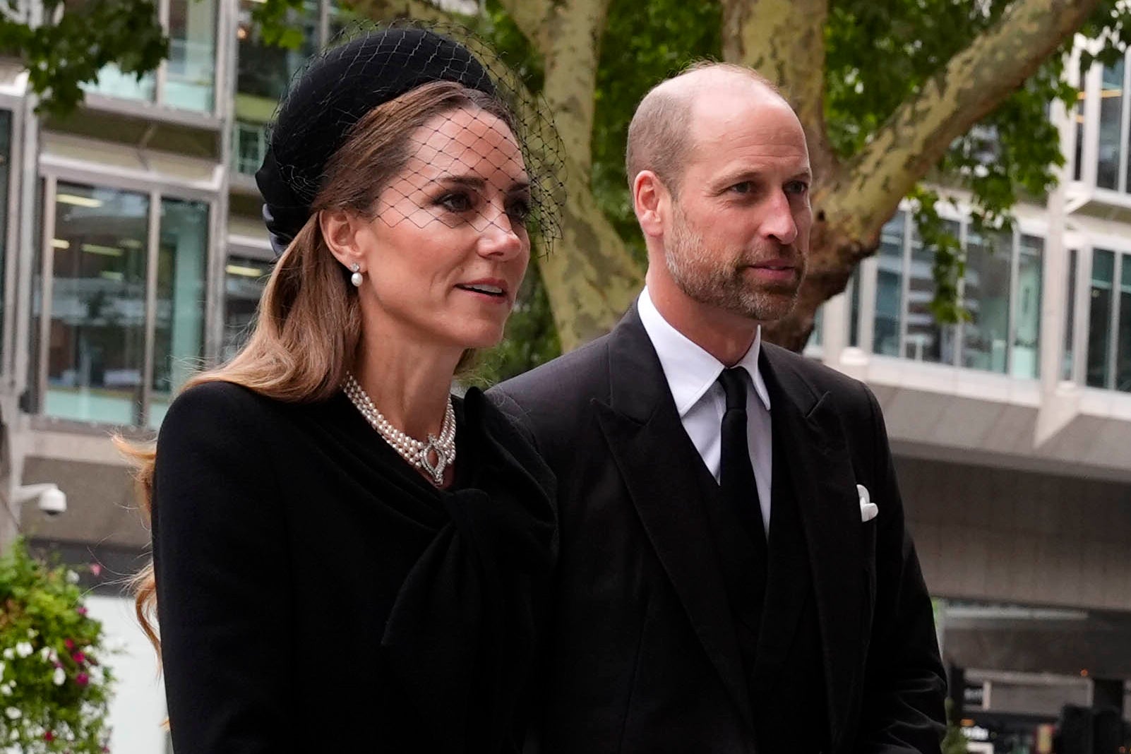 Andrew and Sarah sat at the end of a row. Kate sat across the aisle, wearing a four-strand pearl-and-diamond choker necklace that belonged to the late Queen Elizabeth II.