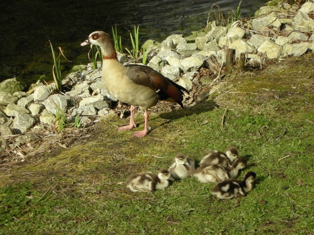 "This mother duck is keeping watch while her brood have a rest." Some spring ducklings in Richmond-Upon-Thames. Photograph: ID2816305Tree bumblebee on sallow blossom. Photograph: PhilGates"Frogs spawning my garden pond." Photograph: ID982148"Primulas (refracted in a dewdrop) have sprung up on the lawn in amongst the primroses." Photograph: Jenny DowningIt's spring in Germany too. "Blossoming trees in Bonn Altstadt." Photograph: Ali Sonia"I've been bottle feeding the babies today." Some Welsh spring lambs for you. Photograph: Drjomac"Tortoise is awake - must be Spring!" Photograph: zmrsot"Having been observing the pair of robins nesting in our ivy for weeks, aware that in recent days there has been frantic feeding in the nest, I have in the past two days been avidly watching at least two fledglings on the ground. As yet unable to fly, they have spent 48 hours balanced precariously on nature's knife-edge, as their devoted parents continue an impressive campaign of constant feeding. I have done my bit in keeping the cats away, and in fervently willing them to live." Photograph: Esme Patey-FordA Sweep of Daffodils in Leicester. Photograph: jonathanbradleyDouble Toad! Photograph: Twelfthofnever"I spotted this little robin as I walked along the tow path by the river, he seemed full of the joys of ppring and brightened my day." Photograph: ID2816305"A meal with a view." Sheep enjoying the sunshine in Gwynedd, Wales. Photograph: Shaun Sannerude"You know it's spring when you see a blue tit recycling nesting material from an old bird-box." And the bird box in question was made by a Friend's of the Park workshop with children from the Surrey Square Primary School. Photograph: Julian WestonDaisies in Pougny, France. Photograph: Jenny Downing