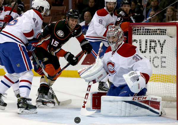 Price's acrobatics prevented the Ducks from extending that margin, with his most spectacular save coming in the final seconds of the middle period on a sprawling stop of a shot by defenseman Sami Vatanen. Earlier in the period, Price made an exceptional stop on a point-blank shot by Corey Perry, who has gone 15 games without a goal.
