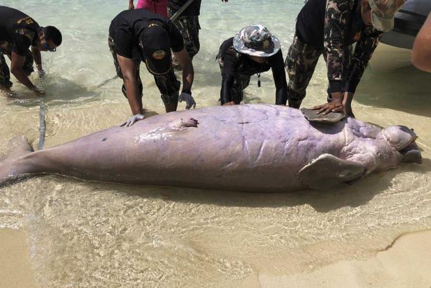 In Krabi, the dead dugong was pulled out of the sea between Koh Pu and Koh Phi Phi. The other dead dugong was found washed ashore on Hat Samran beach in Trang's Hat Samran district.