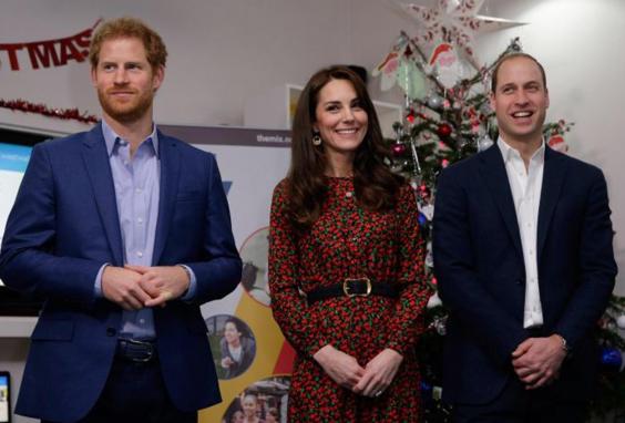 On arrival at the Harrow Club, a centre for young people in west London, the royal party – the Duchess dressed in a festive red and green dress and the Duke and Prince Harry in dark blue suits – yesterday were met by both volunteers and those who use The Mix’s services.