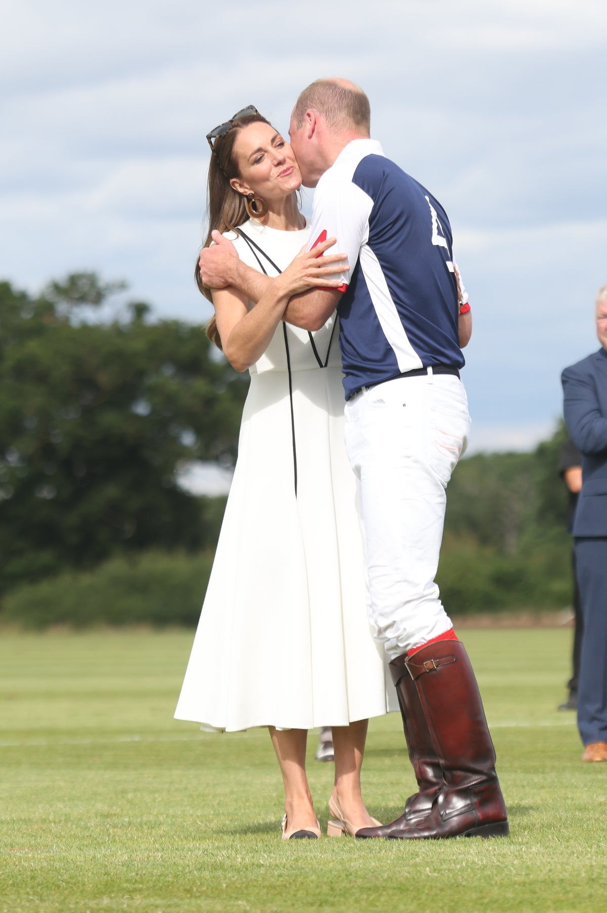 William and Kate kissed on both cheeks as the duchess presented the prizes after the Royal Charity Polo Cup staged in Berkshire, just a few miles from Windsor Castle, at the Castle Ground at Guards Polo Club.
