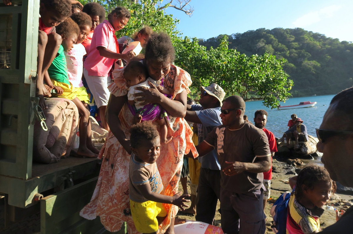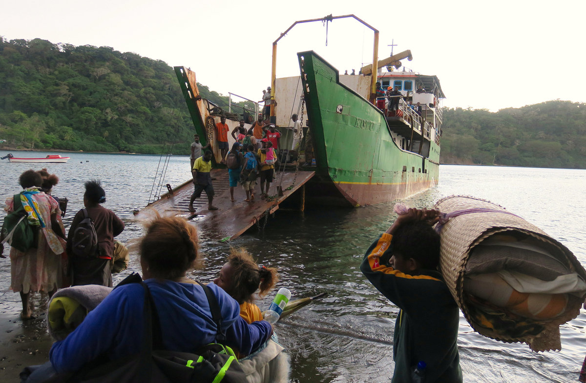 Crowds of islanders from at least three evacuation points on the island have begun boarding ferries, canoes and commercial vessels for the safety of surrounding islands Maewo, Pentecost and Santo.