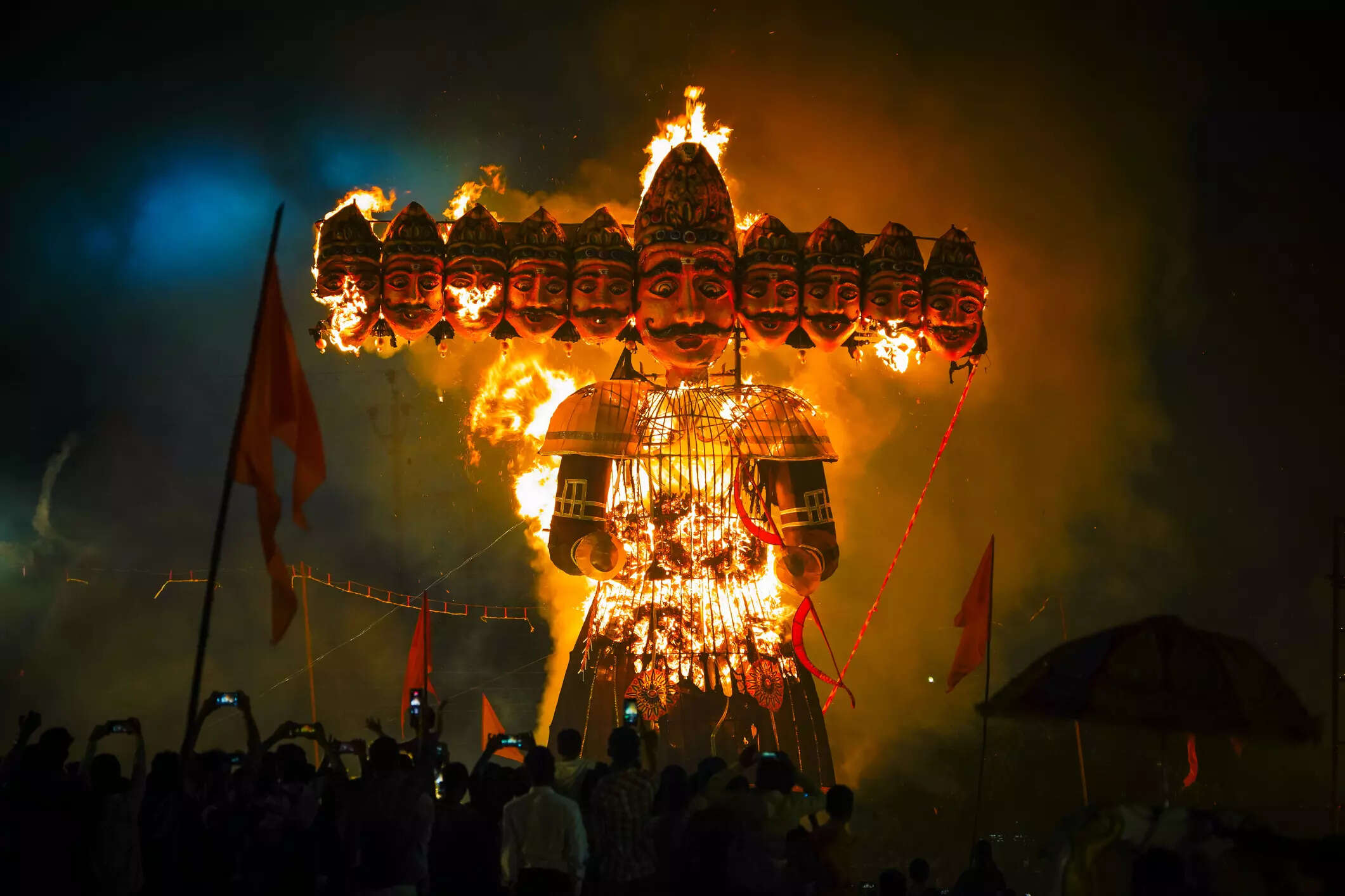 In the evening, massive effigies of Ravana, his brother Kumbhakaran, and son Meghnath are burned to represent the end of evil and the triumph of good. This is the most awaited element of the celebration for many, as it is said to bring good fortune.