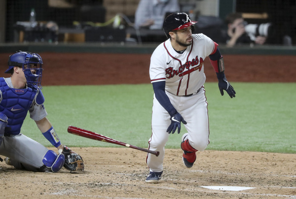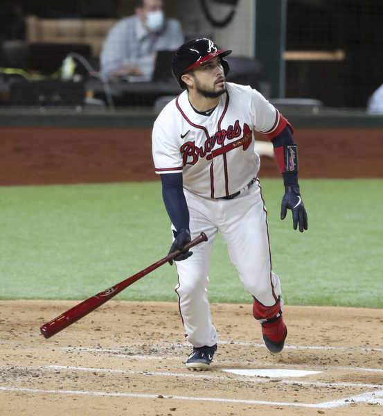 The Los Angeles Dodgers' Corey Seager (5) celebrates with Mookie Betts (50) after his two-run home run in the seventh inning against the Atlanta Braves in Game 5 of the National League Championship Series on Friday, Oct. 16, 2020, at Globe Life Field in Arlington, Texas. (Curtis Compton/Atlanta Journal-Constitution/TNS)The Los Angeles Dodgers' Mookie Betts dodges a pitch from Atlanta Braves pitcher A.J. Minter in the third inning in Game 5 of the National League Championship Series on Friday, Oct. 16, 2020, at Globe Life Field in Arlington, Texas. (Robert Gauthier/Los Angeles Times/TNS)The Atlanta Braves' bench celebrates a single by Nick Markakis in the second inning against the Los Angeles Dodgers in Game 5 of the National League Championship Series on Friday, Oct. 16, 2020, at Globe Life Field in Arlington, Texas. (Curtis Compton/Atlanta Journal-Constitution/TNS)Atlanta Braves left fielder Nick Markakis catches a fly out by the Los Angeles Dodgers' Corey Seager in the sixth inning in Game 5 of the National League Championship Series on Friday, Oct. 16, 2020, at Globe Life Field in Arlington, Texas. (Curtis Compton/Atlanta Journal-Constitution/TNS)Atlanta Braves center fielder Cristian Pache catches a long drive by the Los Angeles Dodgers' Max Muncy in the eighth inning in Game 5 of the National League Championship Series on Friday, Oct. 16, 2020, at Globe Life Field in Arlington, Texas. (Curtis Compton/Atlanta Journal-Constitution/TNS)Atlanta Braves pitcher A.J. Minter throws his first pitch of the game against the Los Angeles Dodgers in Game 5 of the National League Championship Series on Friday, Oct. 16, 2020, at Globe Life Field in Arlington, Texas. (Curtis Compton/Atlanta Journal-Constitution/TNS)Atlanta Braves center fielder Cristian Pache can't reach a fourth-inning home run by the Los Angeles Dodgers' Corey Seager in Game 5 of the National League Championship Series on Friday, Oct. 16, 2020, at Globe Life Field in Arlington, Texas. (Curtis Compton/Atlanta Journal-Constitution/TNS)Atlanta Braves pitcher Jacob Webb throws in the seventh inning against the Los Angeles Dodgers in Game 5 of the National League Championship Series on Friday, Oct. 16, 2020, at Globe Life Field in Arlington, Texas. (Curtis Compton/Atlanta Journal-Constitution/TNS)The Atlanta Braves' Cristian Pache hits an RBI single in the second inning against the Los Angeles Dodgers in Game 5 of the National League Championship Series on Friday, Oct. 16, 2020, at Globe Life Field in Arlington, Texas. (Curtis Compton/Atlanta Journal-Constitution/TNS)The Los Angeles Dodgers' Mookie Betts celebrates his RBI single in the seventh inning against the Atlanta Braves in Game 5 of the National League Championship Series on Friday, Oct. 16, 2020, at Globe Life Field in Arlington, Texas. (Curtis Compton/Atlanta Journal-Constitution/TNS)The Los Angeles Dodgers' Will Smith (16) celebrates his three-run home run in the sixth inning with Justin Turner (10) against the Atlanta Braves in Game 5 of the National League Championship Series on Friday, Oct. 16, 2020, at Globe Life Field in Arlington, Texas. (Curtis Compton/Atlanta Journal-Constitution/TNS)The Los Angeles Dodgers' Corey Seager celebrates his solo home run in the fourth inning against the Atlanta Braves in Game 5 of the National League Championship Series on Friday, Oct. 16, 2020, at Globe Life Field in Arlington, Texas. (Robert Gauthier/Los Angeles Times/TNS)Atlanta Braves manager Brian Snitker protests a call that the Los Angeles Dodgers' Chris Taylor, not pictured, was hit by a pitch in the seventh inning, and it was ruled the ball hit the bat, in Game 5 of the National League Championship Series on Friday, Oct. 16, 2020, at Globe Life Field in Arlington, Texas. (Curtis Compton/Atlanta Journal-Constitution/TNS)Los Angeles Dodgers catcher Will Smith, left, congratulates relief pitcher Kenley Jansen (74) after the final out in a 7-3 win against the Atlanta Braves in Game 5 of the National League Championship Series on Friday, Oct. 16, 2020, at Globe Life Field in Arlington, Texas. The Dodgers' win forces a Game 6. (Curtis Compton/Atlanta Journal-Constitution/TNS)Los Angeles Dodgers right fielder Mookie Betts catches a fly ball by the Atlanta Braves' Dansby Swanson then throws to home in the third inning during Game 5 of the National League Championship Series on Friday, Oct. 16, 2020, at Globe Life Field in Arlington, Texas. The Braves appeared to score a run on the play, but it was overturned on review. (Curtis Compton/Atlanta Journal-Constitution/TNS)The Atlanta Braves' Travis d'Arnaud singles in the third inning against the Los Angeles Dodgers in Game 5 of the National League Championship Series on Friday, Oct. 16, 2020, at Globe Life Field in Arlington, Texas. (Curtis Compton/Atlanta Journal-Constitution/TNS)The Los Angeles Dodgers' Will Smith hits a three-run home run in the sixth inning against the Atlanta Braves in Game 5 of the National League Championship Series on Friday, Oct. 16, 2020, at Globe Life Field in Arlington, Texas. (Robert Gauthier/Los Angeles Times/TNS)The Atlanta Braves' Johan Camargo stands tall in the dugut in celebration of an RBI single by Cristian Pache in the second inning against the Los Angeles Dodgers in Game 5 of the National League Championship Series on Friday, Oct. 16, 2020, at Globe Life Field in Arlington, Texas. (Curtis Compton/Atlanta Journal-Constitution/TNS)The Los Angeles Dodgers' Mookie Betts (50) steals second ahead of the throw to Atlanta Braves second baseman Ozzie Albies in the sixth inning in Game 5 of the National League Championship Series on Friday, Oct. 16, 2020, at Globe Life Field in Arlington, Texas. (Curtis Compton/Atlanta Journal-Constitution/TNS)Atlanta Braves pitcher A.J. Minter throws in the first inning against the Los Angeles Dodgers in Game 5 of the National League Championship Series on Friday, Oct. 16, 2020, at Globe Life Field in Arlington, Texas. (Robert Gauthier/Los Angeles Times/TNS)The Los Angeles Dodg