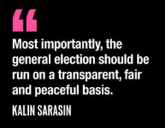 "Most importantly, the general election should be run on a transparent, fair and peaceful basis, while the policies announced by the political parties should come up with implementation processes and how to execute them," he said.