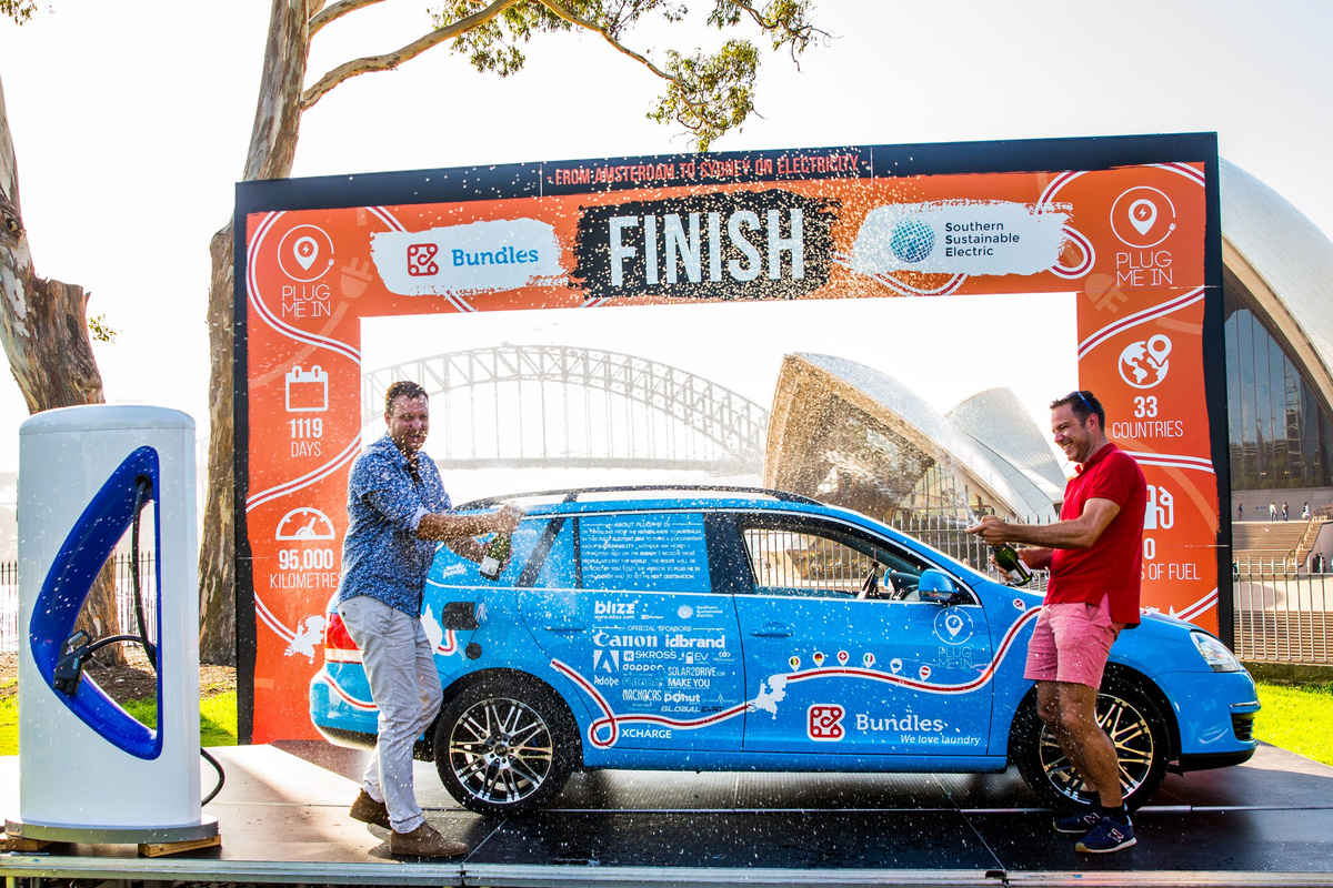 Dutch adventurer finishes three-year electric car journey in Australia