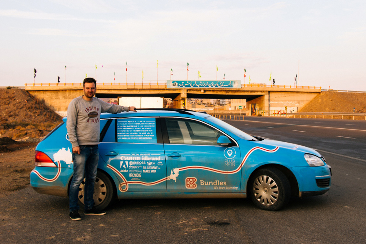 Dutch adventurer Wiebe Wakker on his electric car journey from the Netherlands to Australia, in Iran November, 2016 in this picture obtained from social media. WIEBE WAKKER/PLUG ME IN PROJECT/via REUTERS