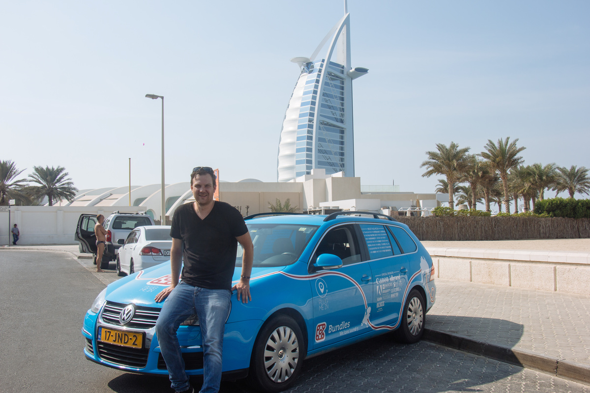 Dutch adventurer Wiebe Wakker on his electric car journey from the Netherlands to Australia, in Dubai, UAE December 2016 in this picture obtained from social media. WIEBE WAKKER/PLUG ME IN PROJECT/via REUTERS