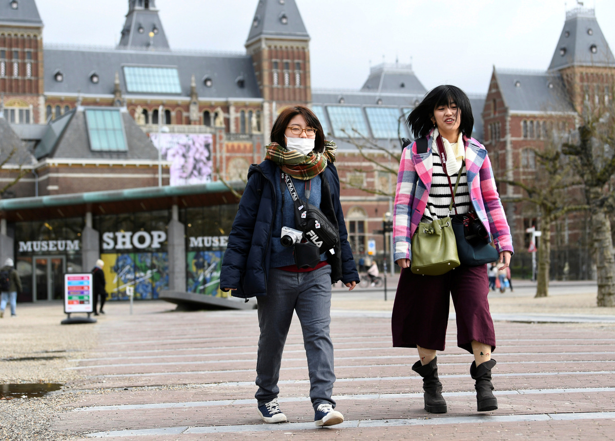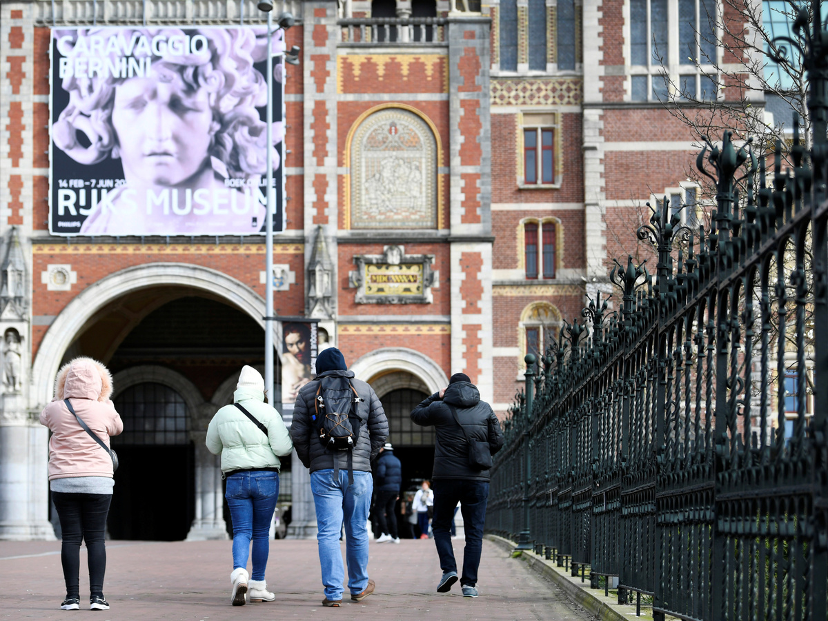 Tourists are confronted with a closed Rijksmuseum because of the coronavirus outbreak, in Amsterdam, Netherlands March 13, 2020. REUTERS/Piroschka van de Wouw