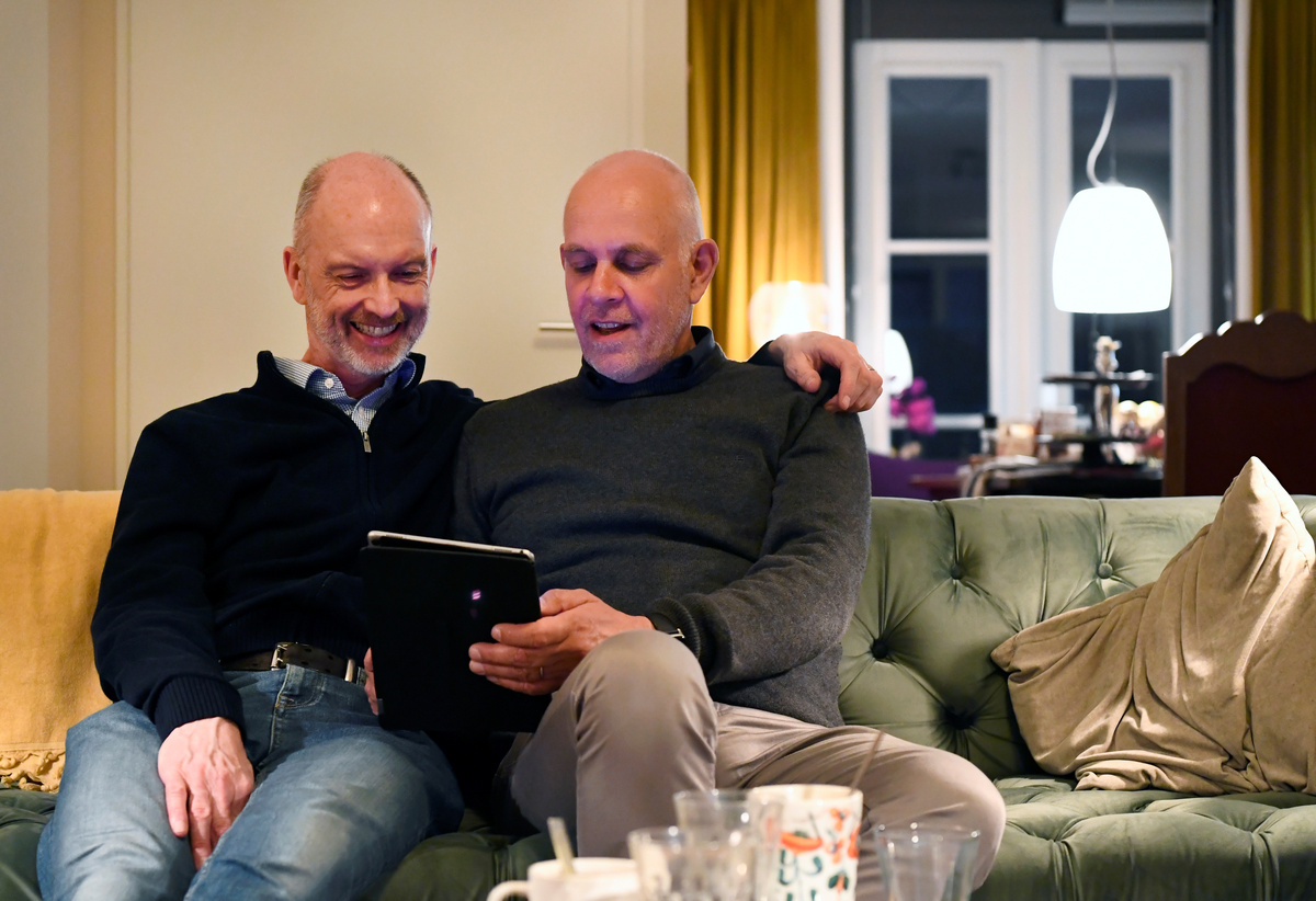 "It's nicer to say to other people 'he's my husband, he's my man'," said Dolf, sitting next to Gert as they flipped through an album of photos and newspaper clippings of the wedding, which made headlines worldwide. "It has helped me to accept myself."