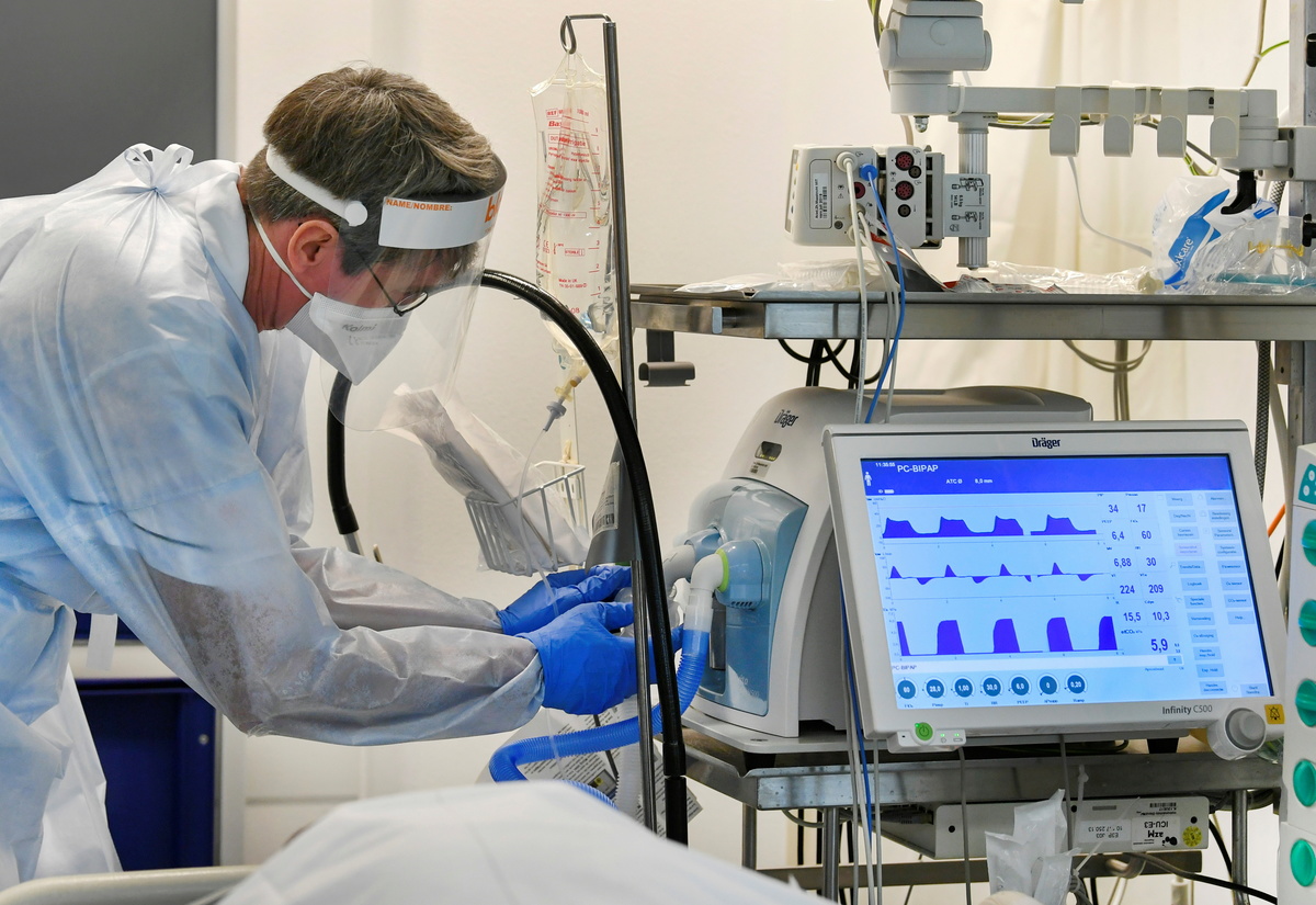 A member of the medical personnel wearing a full protective suit works in the intensive care unit at Maastricht UMC+ Hospital, where patients suffering from the coronavirus disease (COVID-19) are treated, in Maastricht, Netherlands, November 10, 2020. REUTERS/Piroschka van de WouwA member of the medical personnel wearing a full protective suit works in the intensive care unit at Maastricht UMC+ Hospital, where patients suffering from the coronavirus disease (COVID-19) are treated, in Maastricht, Netherlands, November 10, 2020. REUTERS/Piroschka van de Wouw
