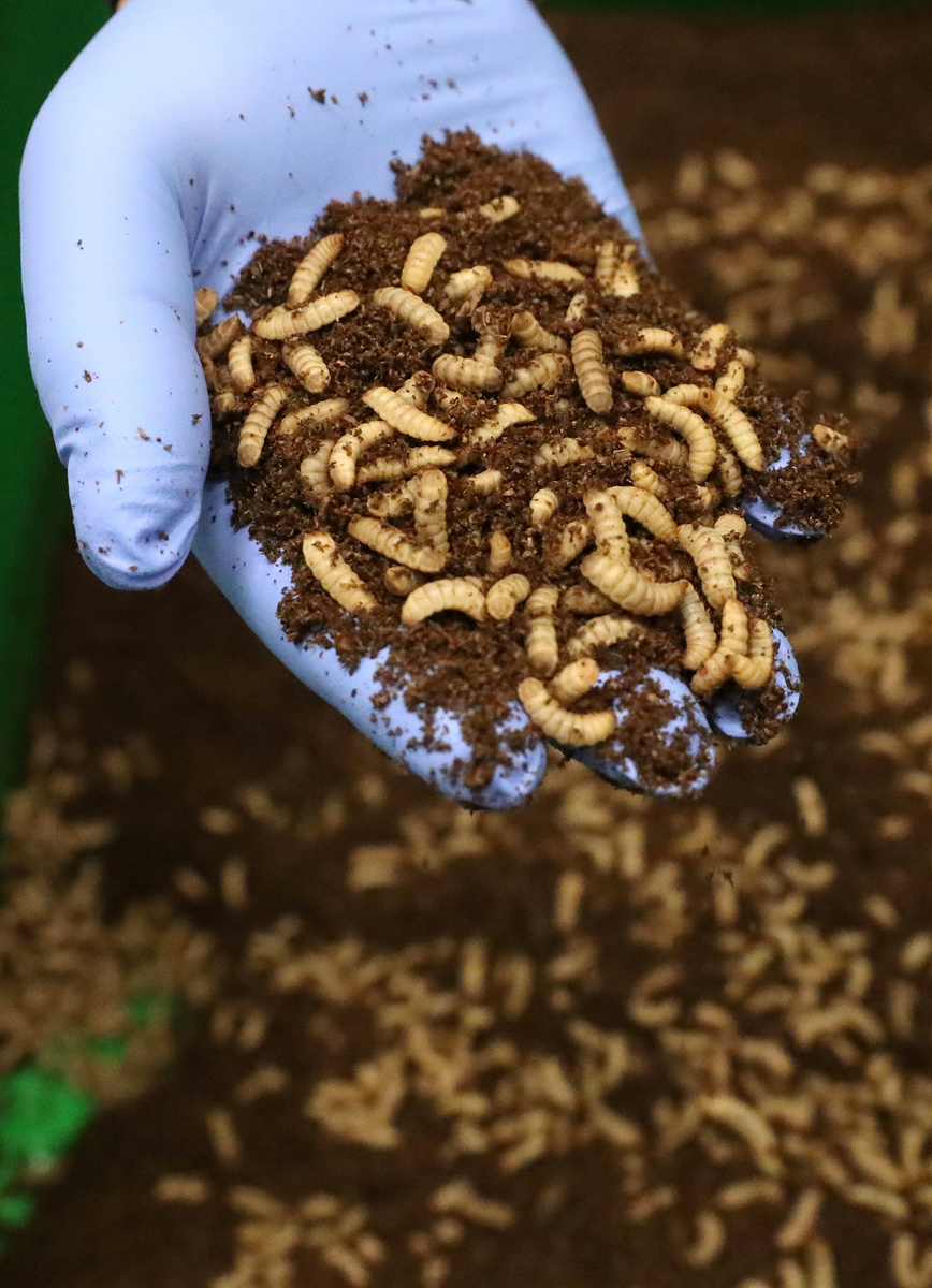 Larvae of insects are seen at Protix, the first farm capable of large scale production of insects for use in animal feed that opened in Bergen-op-Zoom, Netherlands June 11, 2019. REUTERS/Yves Herman