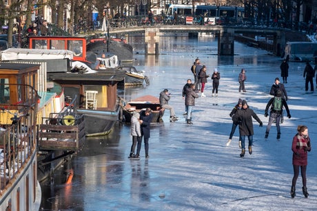 Elsewhere in the country the ice was safer. People flocked to frozen lakes and canals to enjoy the conditions before a thaw forecast to begin in coming days. Parents pulled children in sleds, youngsters played hockey, even dogs took to the ice.