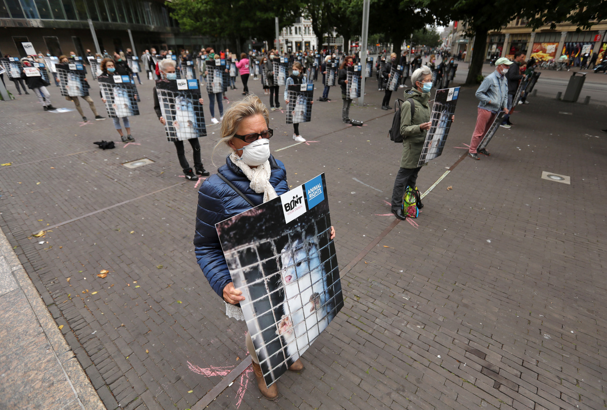 Demonstrators hold images of mink during a protest calling for an end to the fur trade, following the decision of the Dutch government to cull thousands of mink on farms where animals are infected with the coronavirus disease (COVID-19), in The Hague, Netherlands, June 8, 2020. REUTERS/Eva PlevierPeople attend a protest calling for an end to the fur trade, following the decision of the Dutch government to cull thousands of mink on farms where animals are infected with the coronavirus disease (COVID-19), in The Hague, Netherlands, June 8, 2020. REUTERS/Eva PlevierDemonstrators hold images of mink during a protest calling for an end to the fur trade, following the decision of the Dutch government to cull thousands of mink on farms where animals are infected with the coronavirus disease (COVID-19), in The Hague, Netherlands, June 8, 2020. REUTERS/Eva PlevierA demonstrator wearing a protective face mask holds a sign during a protest calling for an end to the fur trade, following the decision of the Dutch government to cull thousands of mink on farms where animals are infected with the coronavirus disease (COVID-19), in The Hague, Netherlands, June 8, 2020. REUTERS/Eva Plevier NO RESALES. NO ARCHIVES.A demonstrator wearing a protective face mask attends a protest calling for an end to the fur trade, following the decision of the Dutch government to cull thousands of mink on farms where animals are infected with the coronavirus disease (COVID-19), in The Hague, Netherlands, June 8, 2020. REUTERS/Eva PlevierA demonstrator wearing a protective face mask attends a protest calling for an end to the fur trade, following the decision of the Dutch government to cull thousands of mink on farms where animals are infected with the coronavirus disease (COVID-19), in The Hague, Netherlands, June 8, 2020. REUTERS/Eva Plevier
