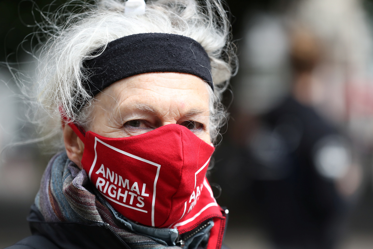 The protesters, many wearing face masks with animal rights slogans, held images of mink in cages and called on the government to move a 2024 ban on fur farms forward and close them immediately.
