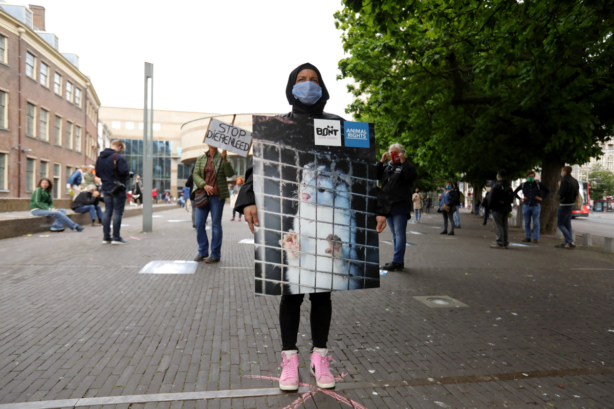 More than 100 people calling for an end to fur farming protested in front of the Dutch parliament on Monday following an outbreak of coronavirus on mink farms that has led to a cull of tens of thousands of the animals.