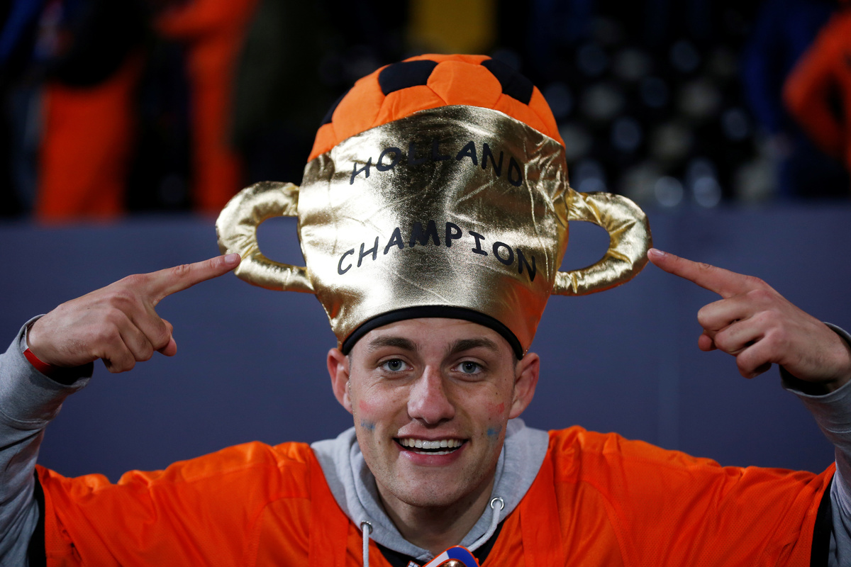Soccer Football - UEFA Nations League Semi Final - Netherlands v England - Estadio D. Afonso Henriques, Guimaraes, Portugal - June 6, 2019 A Netherlands fan celebrates after the match REUTERS/Rafael Marchante