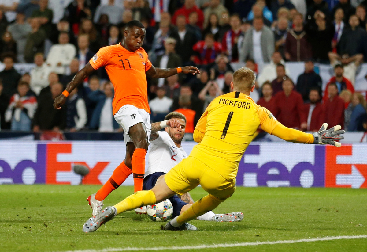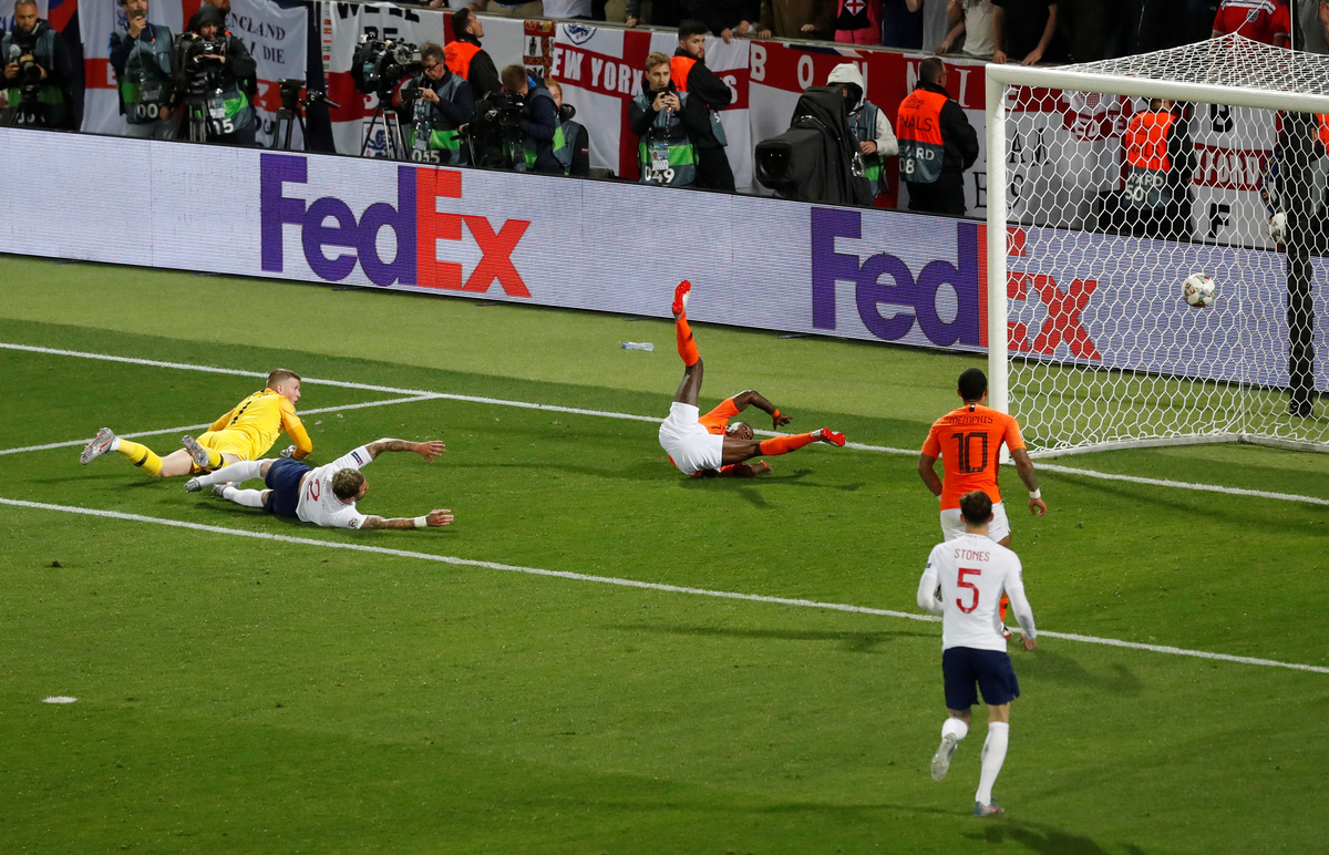 Seven minutes into extra time, Stones dwelled on the ball on the edge of his area and was dispossessed by Depay, whose shot was brilliantly parried by Pickford.