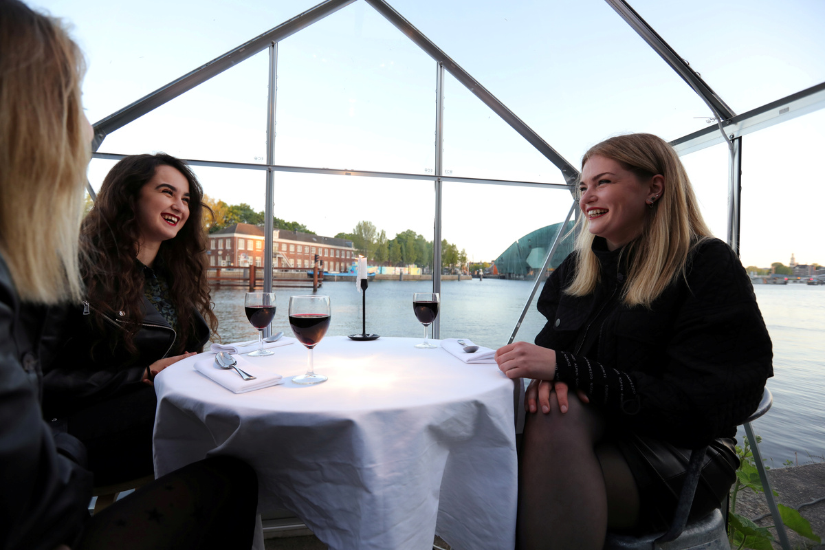 While the concept is currently being trialed only for family and friends of staff from the ETEN restaurant, which is part of the Mediamatic arts centre, it certainly looks glamorous, as diners enjoy candle-lit meals with a waterside view.