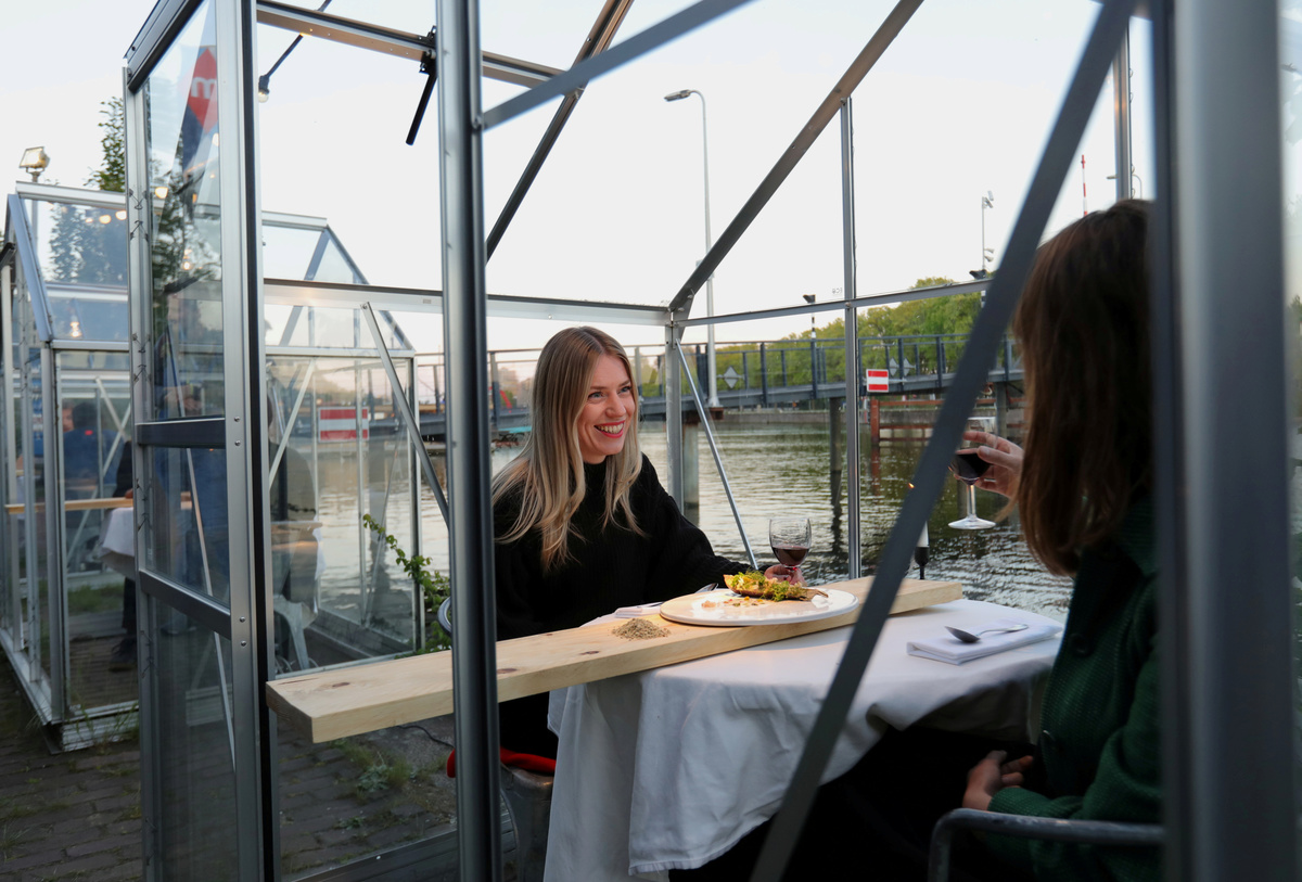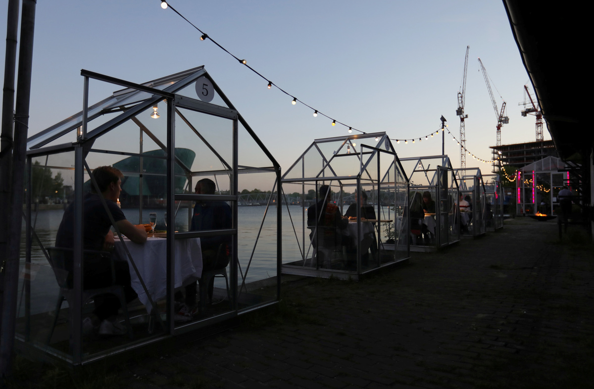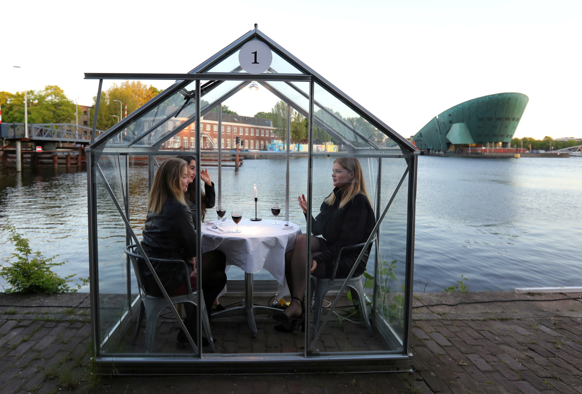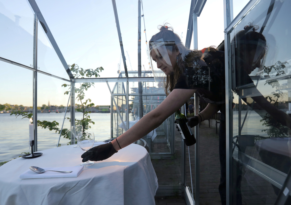 A Dutch restaurant has come up with an idea on how to offer classy outdoor dining in the age of coronavirus: small glass cabins built for two or three people, creating intimate cocoons on a public patio.