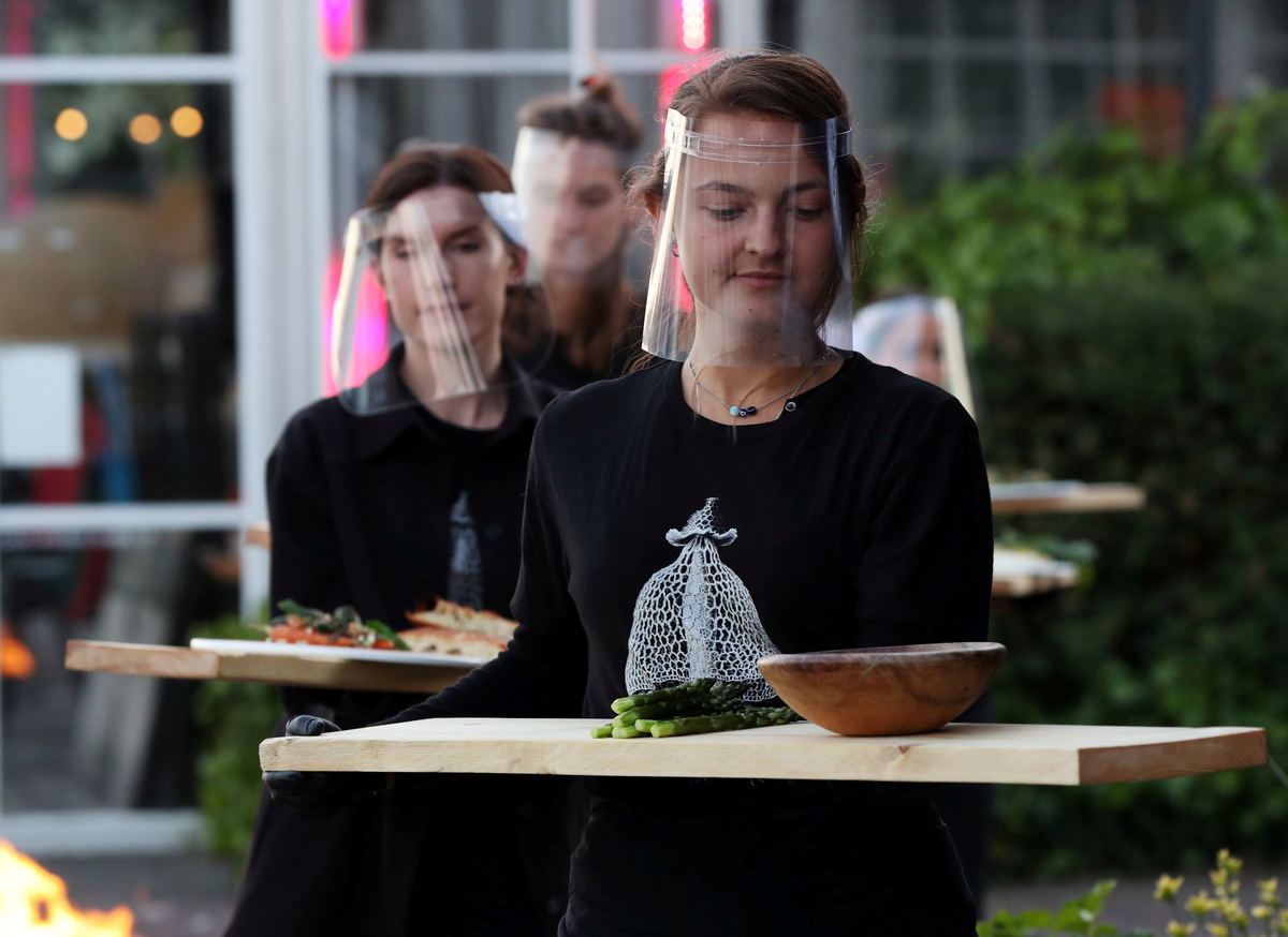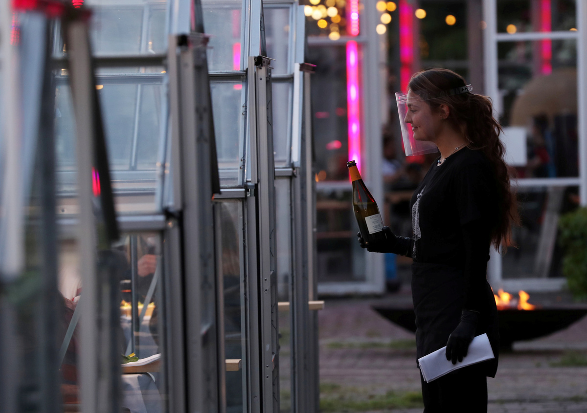 Models and family members are seen dining at a restaurant where they test waiters serving drinks and food to models pretending to be clients in a safe "quarantine greenhouses" in which guests can dine in Amsterdam, Netherlands May 5, 2020. Picture taken May 5, 2020. REUTERS/Eva PlevierRestaurant is testing waiters serving drinks and food to models pretending to be clients in a safe "quarantine greenhouses" in which guests can dine in Amsterdam, Netherlands May 5, 2020. Picture taken May 5, 2020. REUTERS/Eva PlevierModels and family members are seen dining at a restaurant where they test waiters serving drinks and food to models pretending to be clients in a safe "quarantine greenhouses" in which guests can dine in Amsterdam, Netherlands May 5, 2020. Picture taken May 5, 2020. REUTERS/Eva PlevierRestaurant is testing waiters serving drinks and food to models pretending to be clients in a safe "quarantine greenhouses" in which guests can dine in Amsterdam, Netherlands May 5, 2020. Picture taken May 5, 2020. REUTERS/Eva PlevierA waitress is seen with protective gear serving food on a table at a restaurant where they test waiters serving drinks and food to models pretending to be clients in a safe "quarantine greenhouses" in which guests can dine in Amsterdam, Netherlands May 5, 2020. Picture taken May 5, 2020. REUTERS/Eva PlevierRestaurant is testing waiters serving drinks and food to models pretending to be clients in a safe "quarantine greenhouses" in which guests can dine in Amsterdam, Netherlands May 5, 2020. Picture taken May 5, 2020. REUTERS/Eva PlevierA waitress poses for a picture with protective gear at a restaurant where they test waiters serving drinks and food to models pretending to be clients in a safe "quarantine greenhouses" in which guests can dine in Amsterdam, Netherlands May 5, 2020. Picture taken May 5, 2020. REUTERS/Eva PlevierRestaurant is testing waiters serving drinks and food to models pretending to be clients in a safe "quarantine greenhouses" in which guests can dine in Amsterdam, Netherlands May 5, 2020. Picture taken May 5, 2020. REUTERS/Eva PlevierA waitress with protective gear is seen organising glasses on a table at a restaurant where they test waiters serving drinks and food to models pretending to be clients in a safe "quarantine greenhouses" in which guests can dine in Amsterdam, Netherlands May 5, 2020. Picture taken May 5, 2020. REUTERS/Eva PlevierRestaurant is testing waiters serving drinks and food to models pretending to be clients in a safe "quarantine greenhouses" in which guests can dine in Amsterdam, Netherlands May 5, 2020. Picture taken May 5, 2020. REUTERS/Eva PlevierModels and family members are seen dining at a restaurant where they test waiters serving drinks and food to models pretending to be clients in a safe "quarantine greenhouses" in which guests can dine in Amsterdam, Netherlands May 5, 2020. Picture taken May 5, 2020. REUTERS/Eva PlevierModels and family members are seen dining at a restaurant where they test waiters serving drinks and food to models pretending to be clients in a safe "quarantine greenhouses" in which guests can dine in Amsterdam, Netherlands May 5, 2020. Picture taken May 5, 2020. REUTERS/Eva PlevierA restaurant tests servers providing drinks and food to models pretending to be clients in a safe "quarantine greenhouses" in which guests can dine in Amsterdam, Netherlands May 5, 2020. Picture taken May 5, 2020. REUTERS/Eva PlevierModels and family members are seen dining at a restaurant where they test waiters serving drinks and food to models pretending to be clients in a safe "quarantine greenhouses" in which guests can dine in Amsterdam, Netherlands May 5, 2020. Picture taken May 5, 2020. REUTERS/Eva PlevierServers are seen with protective gear carrying food at a restaurant where they test servers providing drinks and food to models pretending to be clients in a safe "quarantine greenhouses" in which guests can dine in Amsterdam, Netherlands May 5, 2020. Picture taken May 5, 2020. REUTERS/Eva PlevierA server is seen with protective gear serving wine at a restaurant where they test providing drinks and food to models pretending to be clients in a safe "quarantine greenhouses" in which guests can dine in Amsterdam, Netherlands May 5, 2020. Picture taken May 5, 2020. REUTERS/Eva PlevierA restaurant tests servers providing drinks and food to models pretending to be clients in a safe "quarantine greenhouses" in which guests can dine in Amsterdam, Netherlands May 5, 2020. Picture taken May 5, 2020. REUTERS/Eva Plevier
