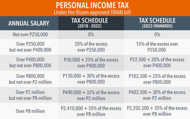 Income taxpayers with an annual salary of P250,000, or those earning approximately P22,000 monthly and below, are now exempt from income tax payment.